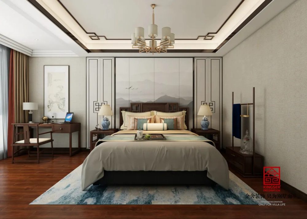 所謂萬變不離其宗,任何一種風(fēng)格演繹都有其特定的文化背景作為支撐,以此來傳遞特定文化氛圍中人們的生活追求。那么新中式便是以中國傳統(tǒng)古典文化作為背景的。營造的是極富中國浪漫情調(diào)的生活空間,如紅木、青花瓷以及一些紅木工藝品等都體現(xiàn)了濃郁的東方之美,這正是新中式風(fēng)格與其它風(fēng)格所不同的地方。